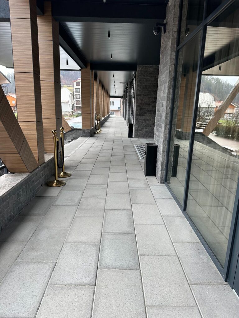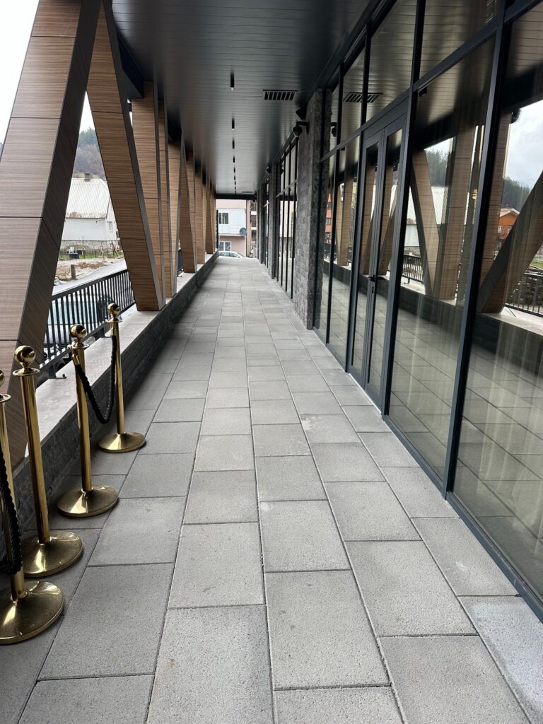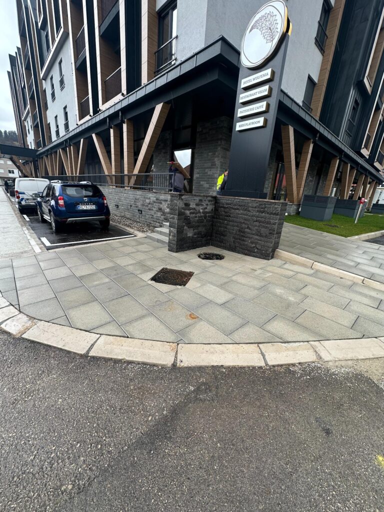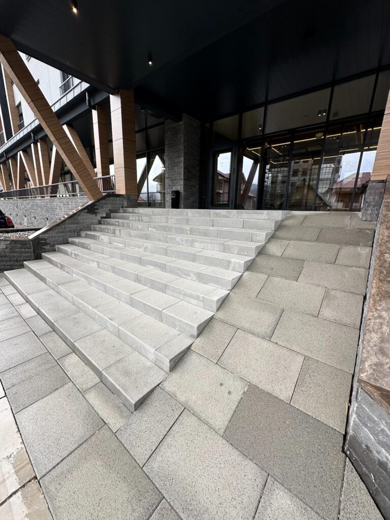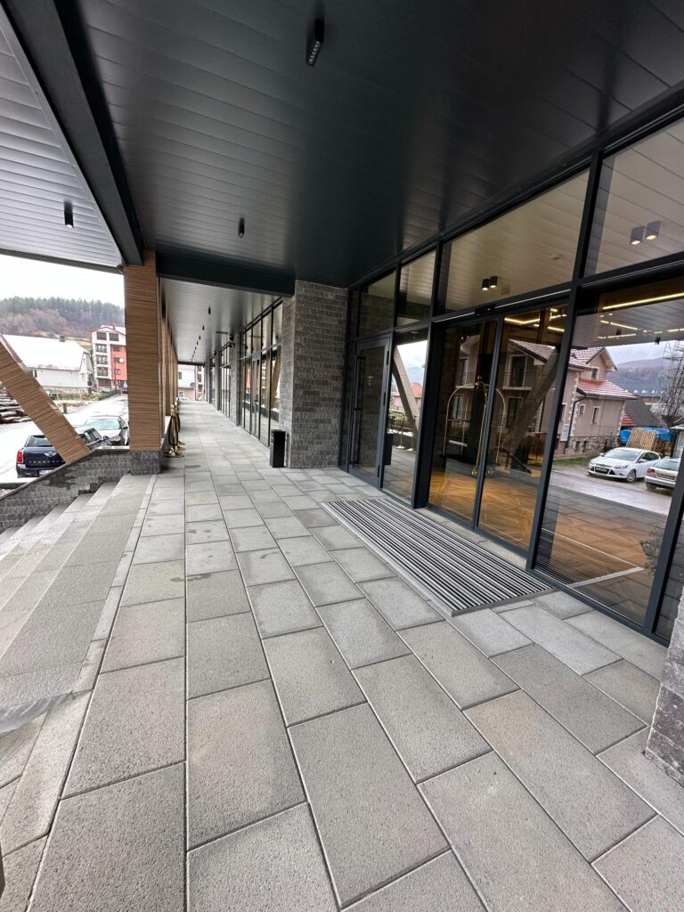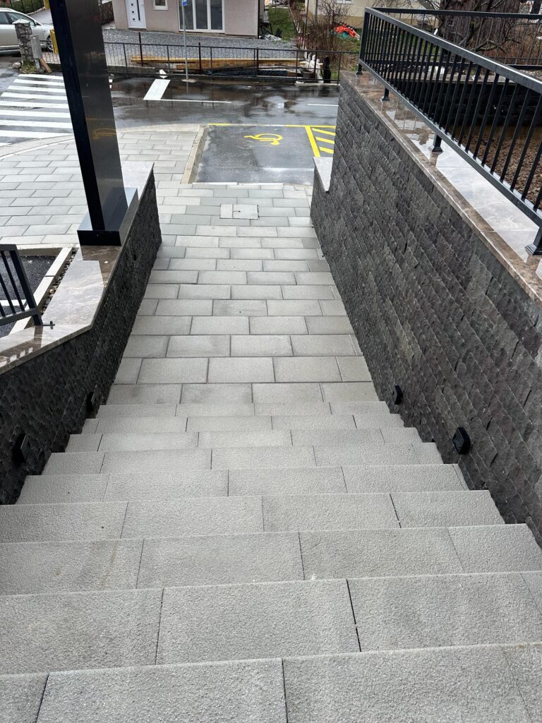 Naša ekipa je postavila behaton ploče i ivičnjake, dajući prostoru moderan i uredan izgled. Poseban akcenat stavili smo na stepenište, koje je izrađeno od